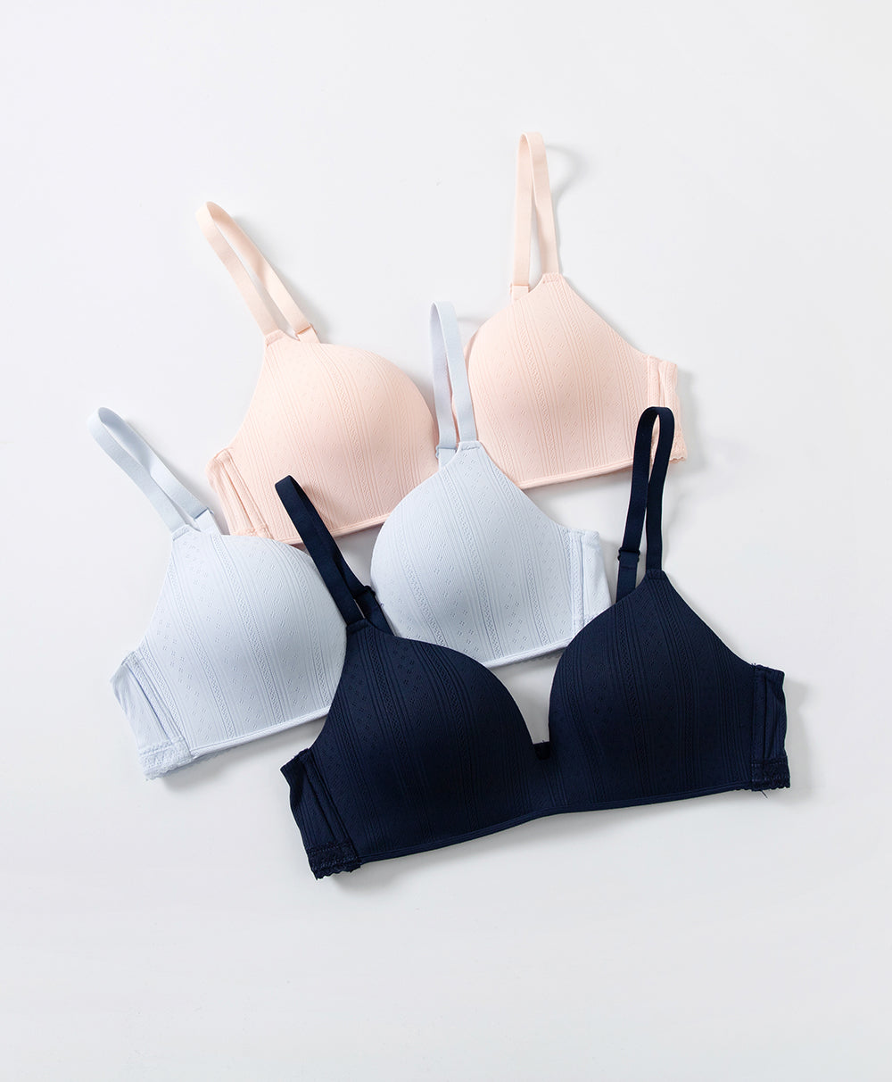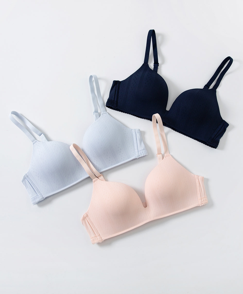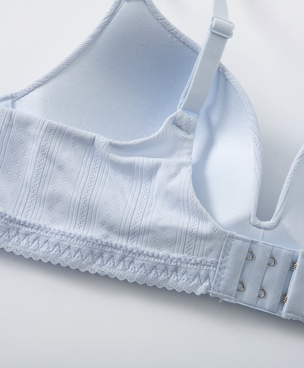 Lace Trim Pointelle Wireless 3/4 Cup Lightly-Lined Bra