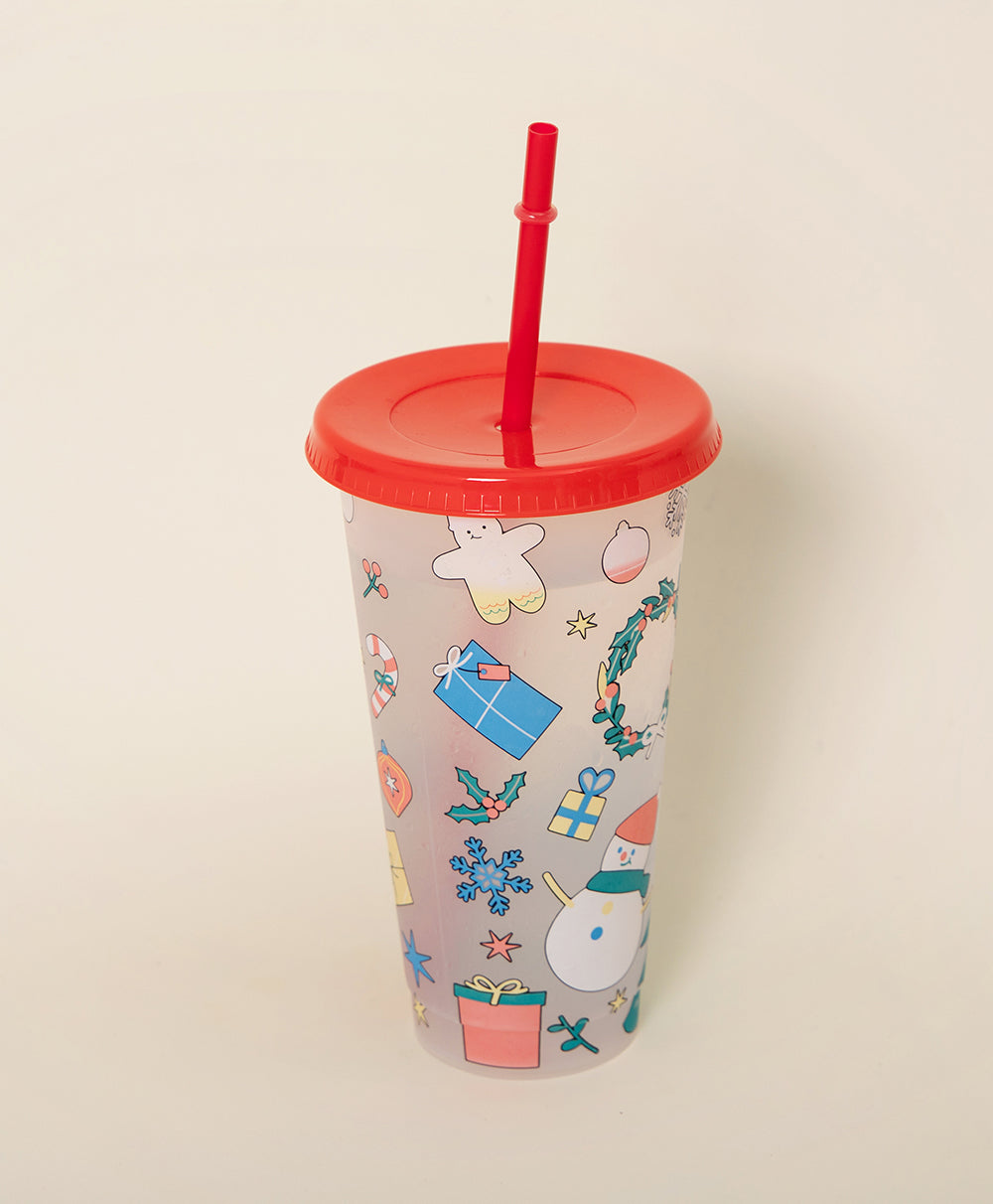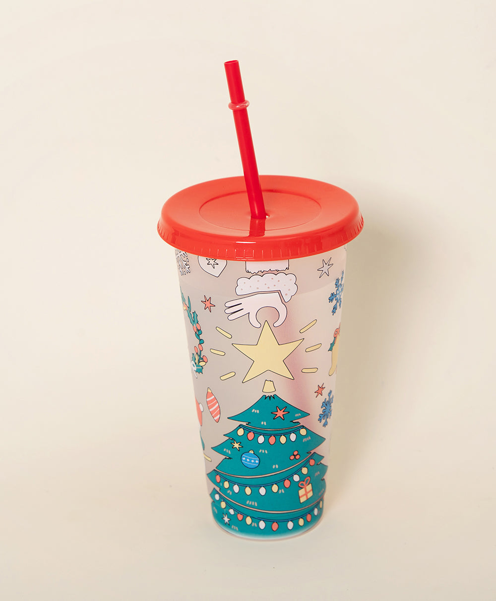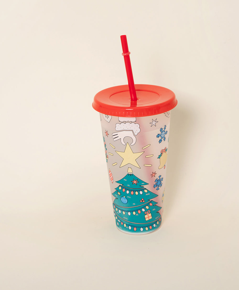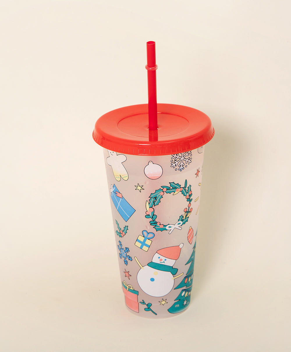 Christmas Plastic Thermocolor Cup with straw