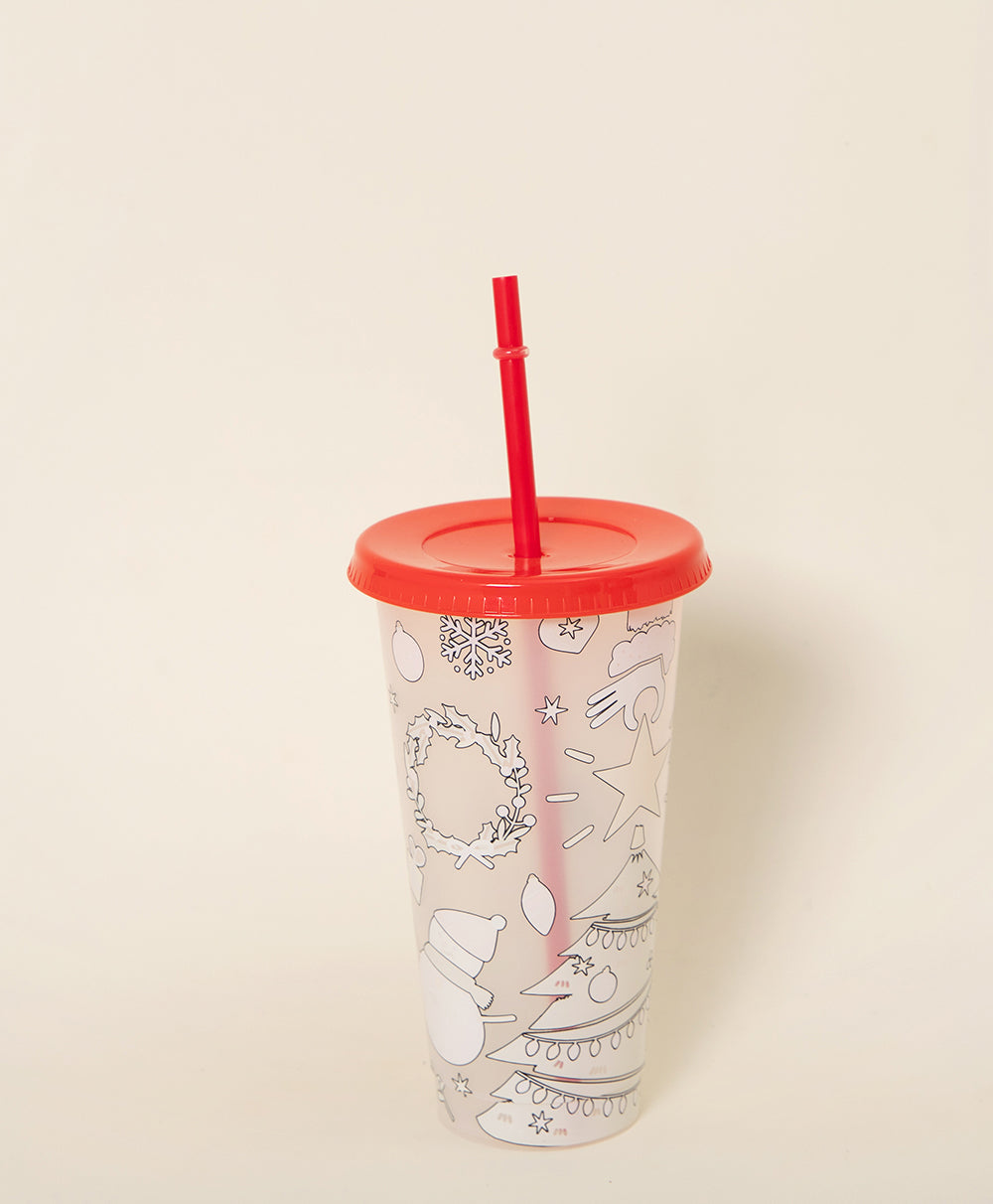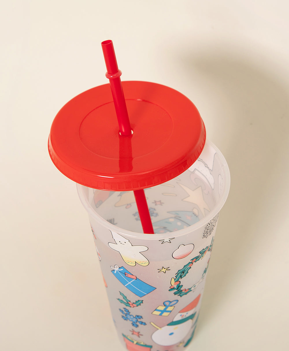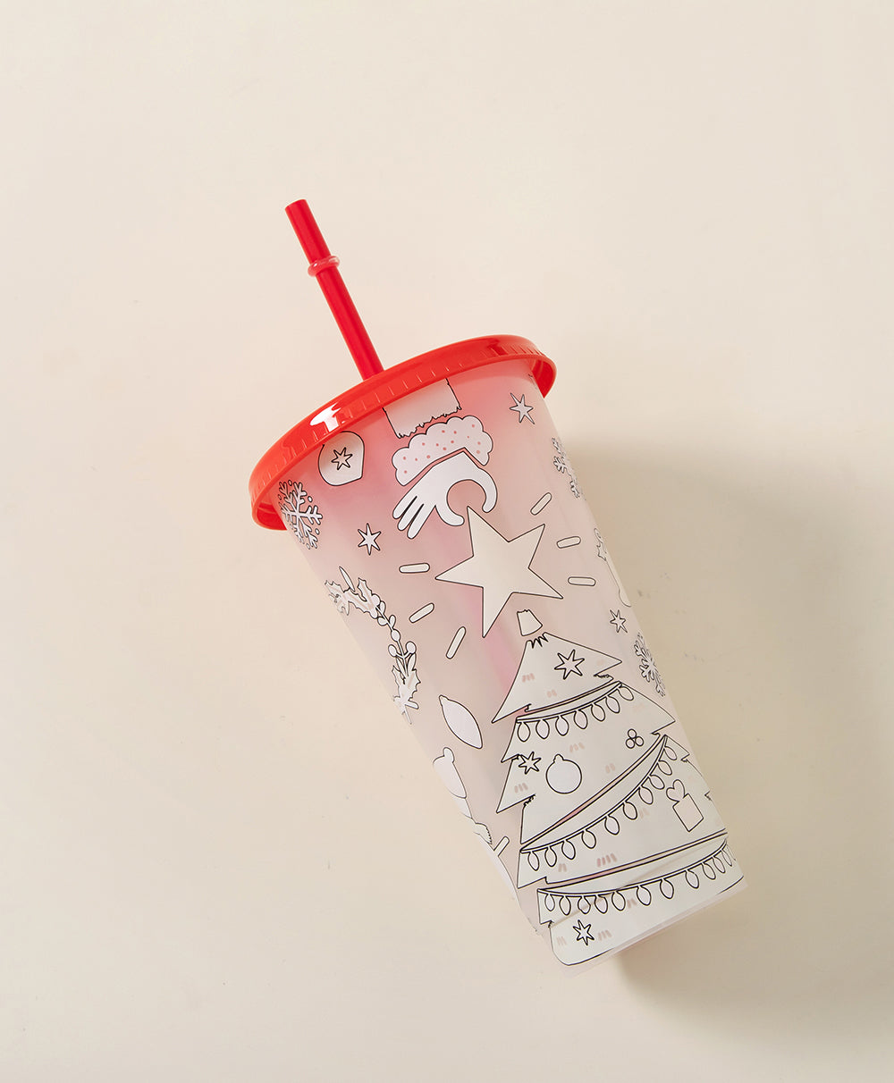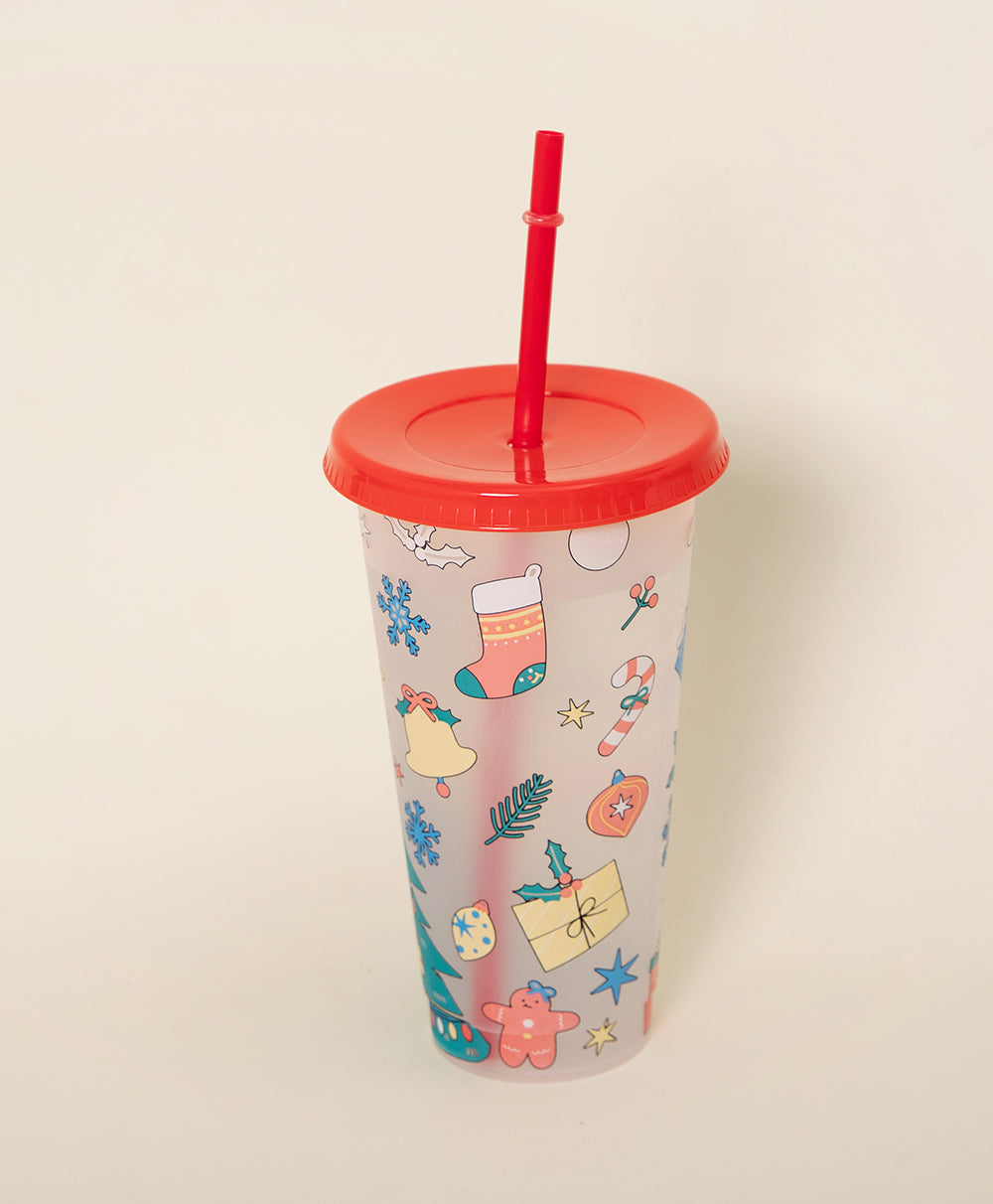 Christmas Plastic Thermocolor Cup with straw